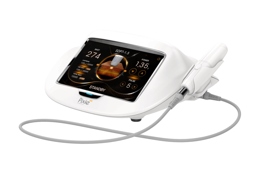 Os Pixels de colágeno de PIXIE são pontos de convergência da energia de ultrassom de alta intensidade capazes de gerar o efeito de lifting não invasivo, rejuvenescimento natural da pele, redução de gordura e contorno corporal